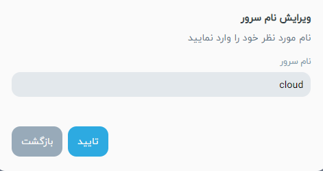 ویرایش: با انتخاب این گزینه از منوی عملیات، در پنجره جدید میتوانید برچسب سرور خود را تغییر دهید.