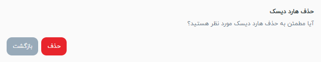 برای حذف یک هارد دیسک، از میان لیست نمایشدادهشده، گزینهی حذف مربوط به هارد دیسک را انتخاب کرده سپس آن را تایید کنید.