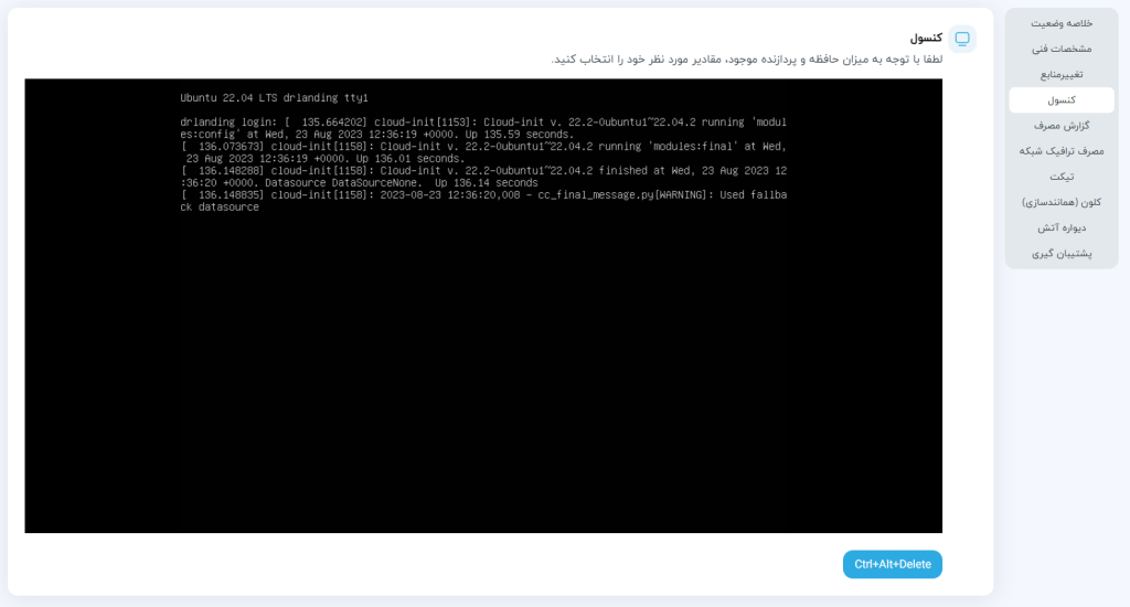 با انتخاب کنسول به سرور مجازی خود دسترسی پیدا خواهید کرد.