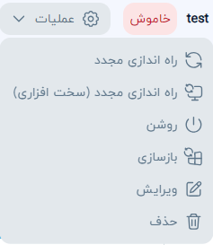 در منوی عملیات، امکانات اصلی سرور ابری شما وجود دارد که با کمک آنها میتوانید دسترسیهای اصلی سرور ابری خود را مدیریت کنید.