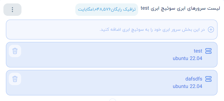 با انتخاب بخش لیست سروهای سوئیچ مورد نظر، میتوانید سرورهای موجود را حذف کنید یا سرور دیگری را اضافه کنید. برای حذف هر سرور بر روی علامت