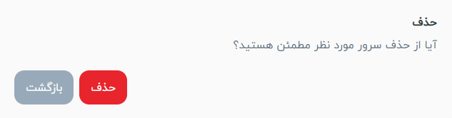 سپس پنجره تایید حذف برای شما نمایشداده میشود، پس از تایید شما، سرور ابری از سوئیچ حذف میشود.